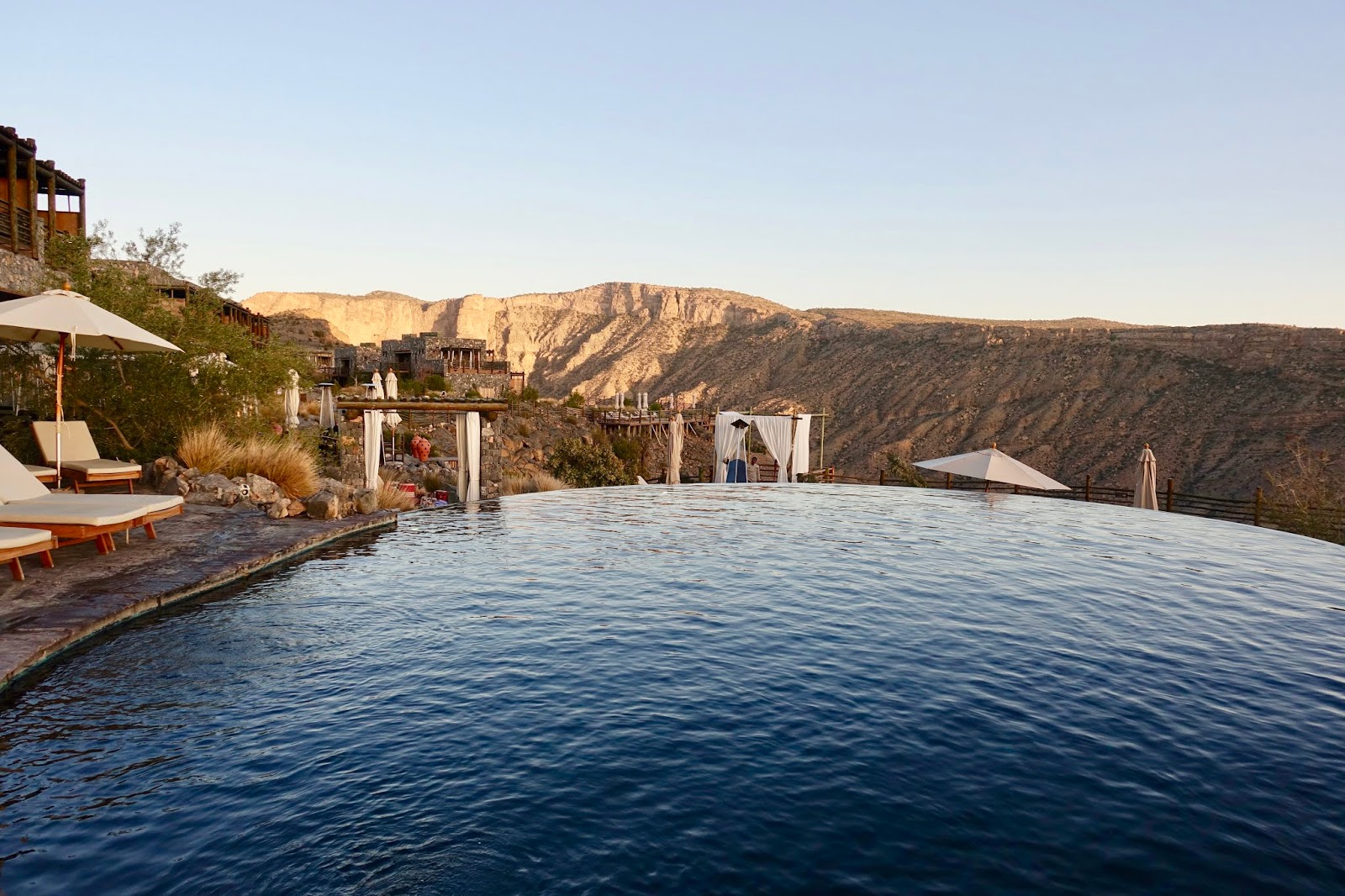 First to the one where we paid a short visit to, the Anantara Al Jabal Al Akhdar Resort, opened in 2016. It is perched on the rim of a grand canyon with a total of 115 rooms, many of which with a great view of the stunning mountain scenery. Some of the rooms even boast a private pool. In addition, there is a viewing platform where Princess Diana once stood, probably in awe of the breathtaking panorama!