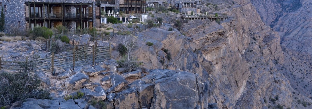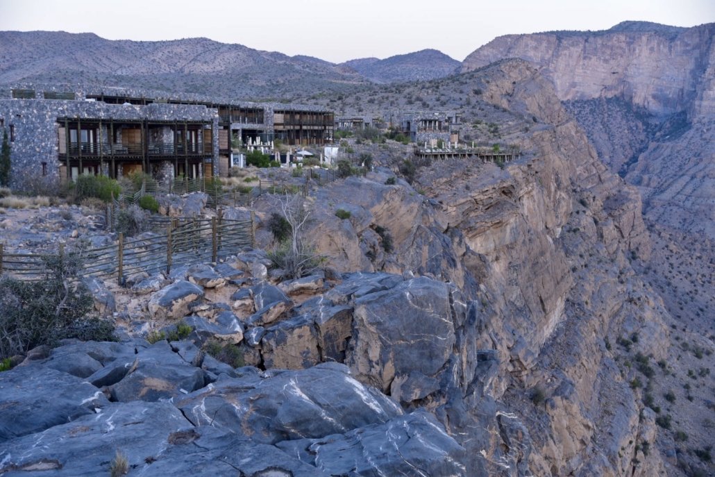 To reach it, you pass the before mentioned Anantara Al Jabal Al Akhdar Resort and drive on for just under half an hour. And there it is, sitting on a cliff overlooking a dramatic gorge, clad in jagged stones blending seamlessly into the surrounding wilderness.