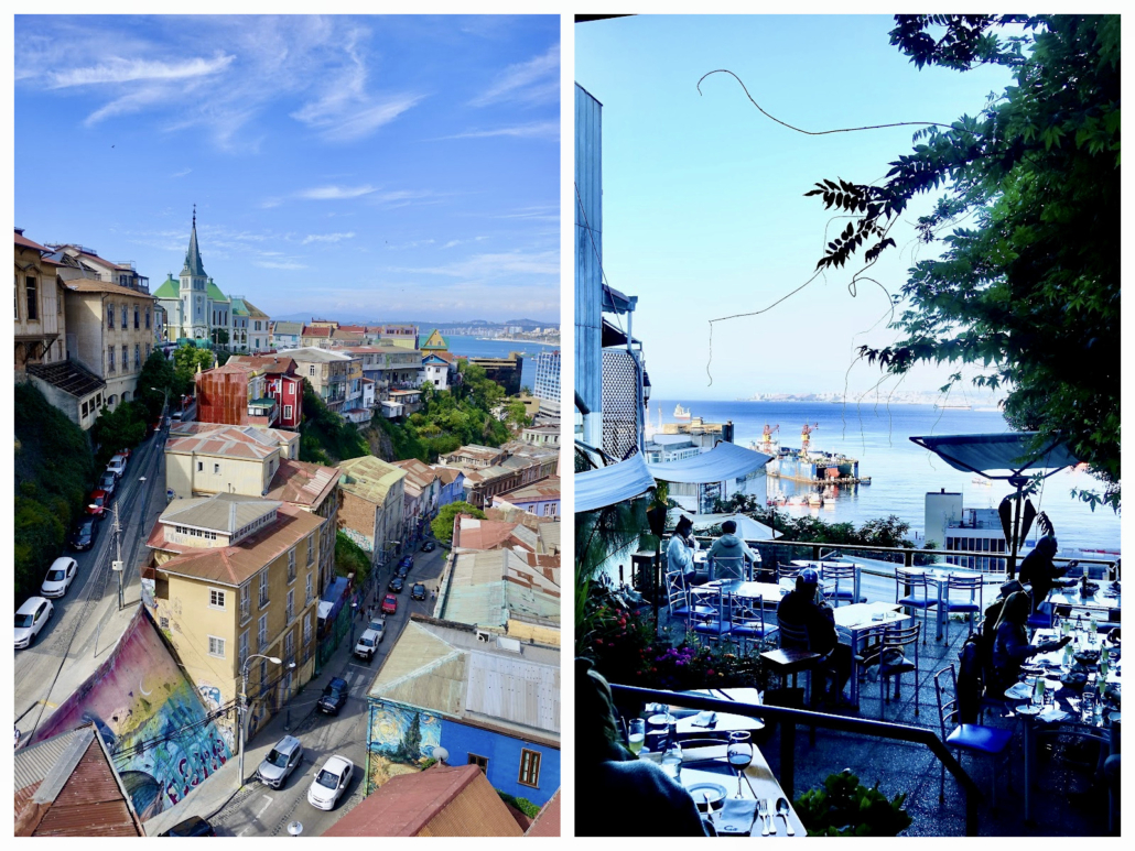 The outdoor area is glorious, a terrace with fabulous views of Valparaiso’s multi-colored houses and the sea.