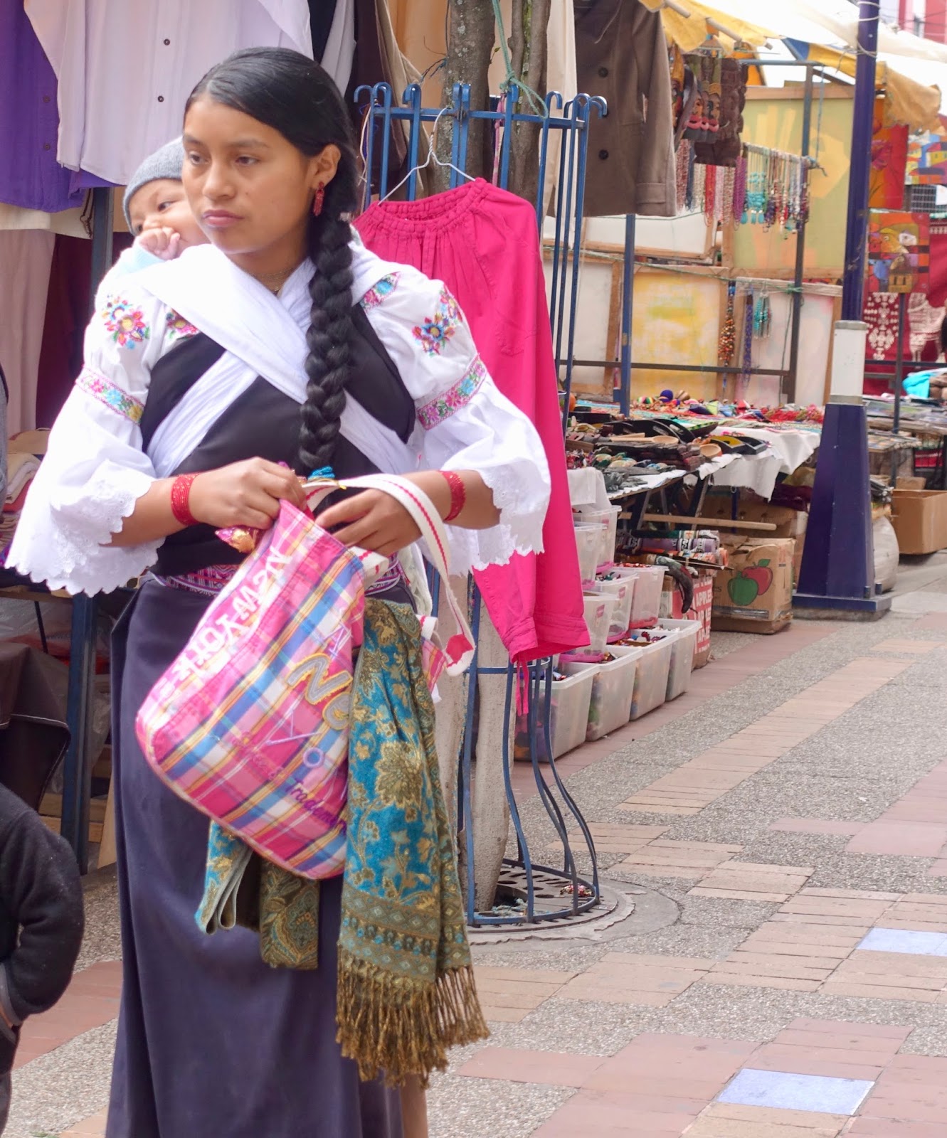 Otavalo is well known for its indigenous market, where handmade traditional crafts, but also mass-produced goods are on offer. The town has been hosting one of the most important markets in the Andes for hundreds of years and it is certainly worth visiting, especially on Saturday, the main market day. The indigenous people, the Otavalenos, still wear traditional clothing – woman with embroidered white blouses and long dark skirts, men with dark blue ponchos and calf-length white trousers.