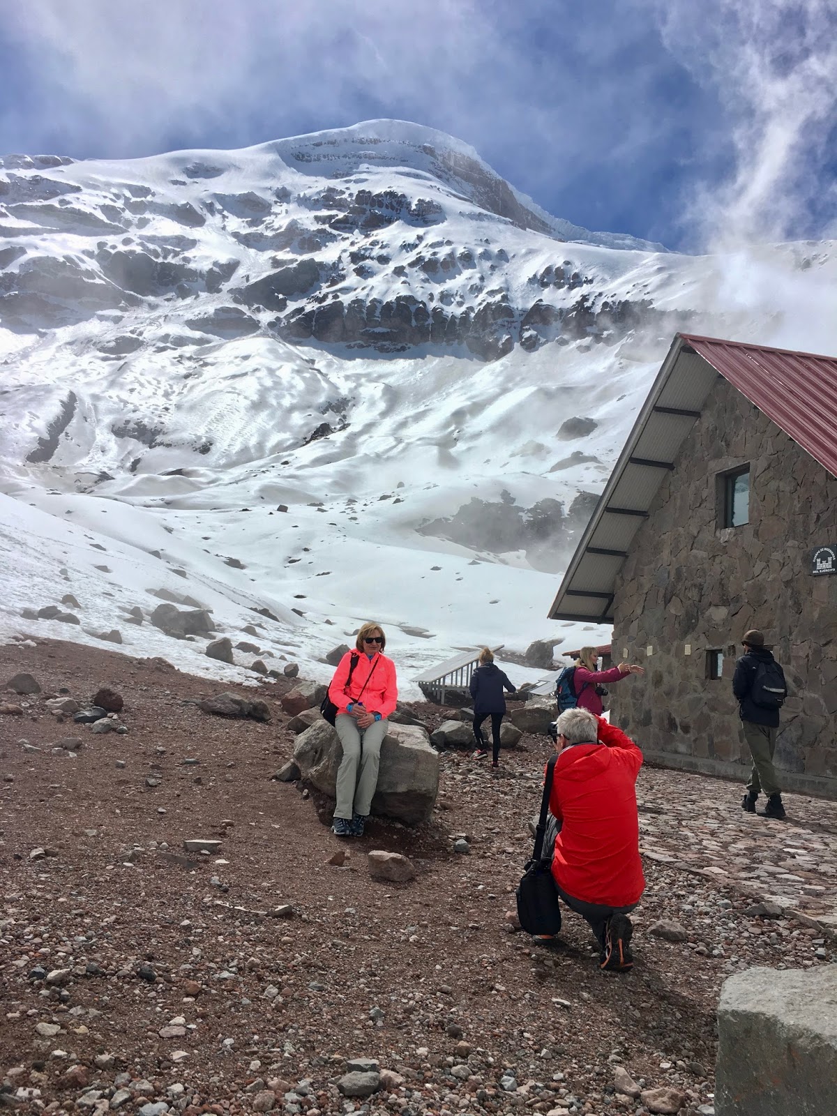 You have to be aware of the fact that if you want to travel the area, you do this at a high elevation. Quito, for example, has an elevation of 2,850 metres (about 10,000 ft) above sea level and the highest point we reached was at 5,000 metres (about 16,400 ft)., and this is the Edward Whymper Refuge (Chimborazo Nature Reserve).